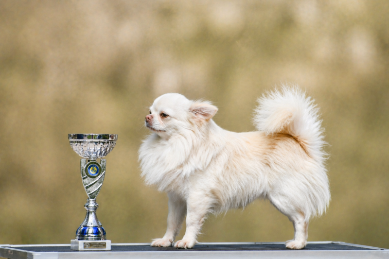 Son père Mirabi Linkoln est un petit fils du multi-champion Frantsuzsky Prince V'stile Oleany, qui a remporté les titres de beauté en Estonie, Lituanie et Russie !